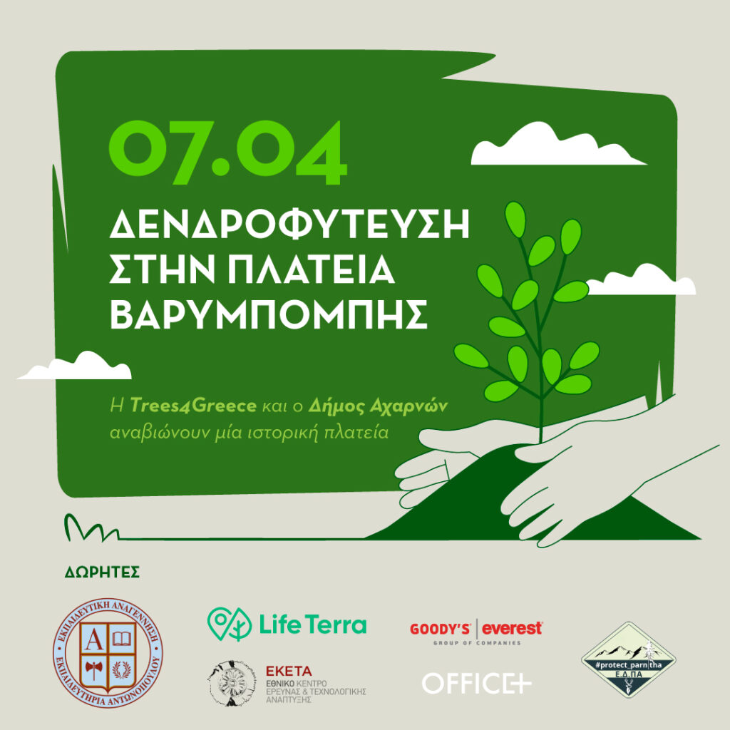 🌳 Συμμετείχαμε και στηρίξαμε τη δράση δενδροφύτευσης στην ιστορική πλατεία Βαρυμπόμπης στις 07/04/2025.