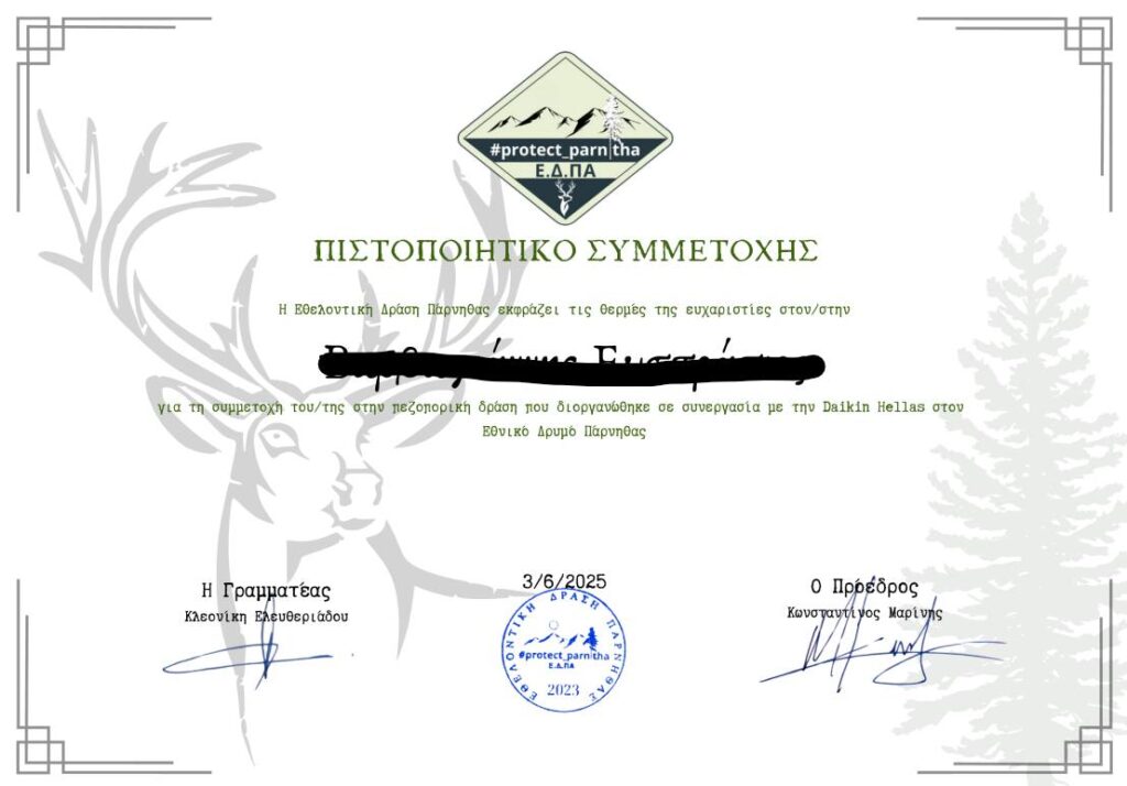 Η Εθελοντική Δράση Πάρνηθας προσφέρει μια μοναδική ευκαιρία στα μέλη της!