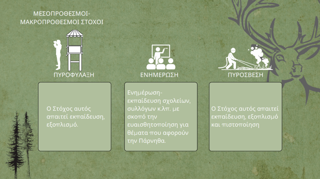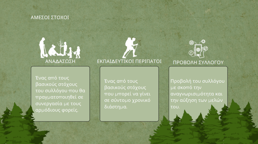 Ο κύριος σκοπός είναι η προστασία όχι μόνο του δάσους αλλά του Βουνού, με κάθε πρόσφορο και νόμιμο τρόπο και μέσο.